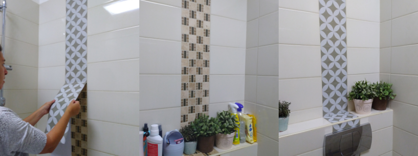 1. לצורך כיסוי פס אריחים – נשתמש במדבקה אטומה.