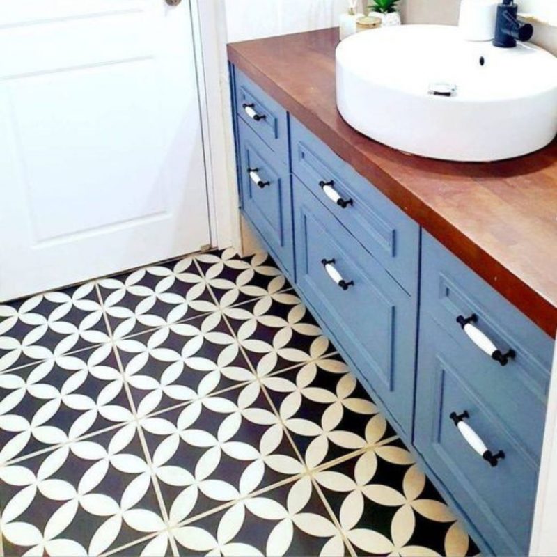 שימוש במדבקות אריחים אטומות דגם שחור לבן.