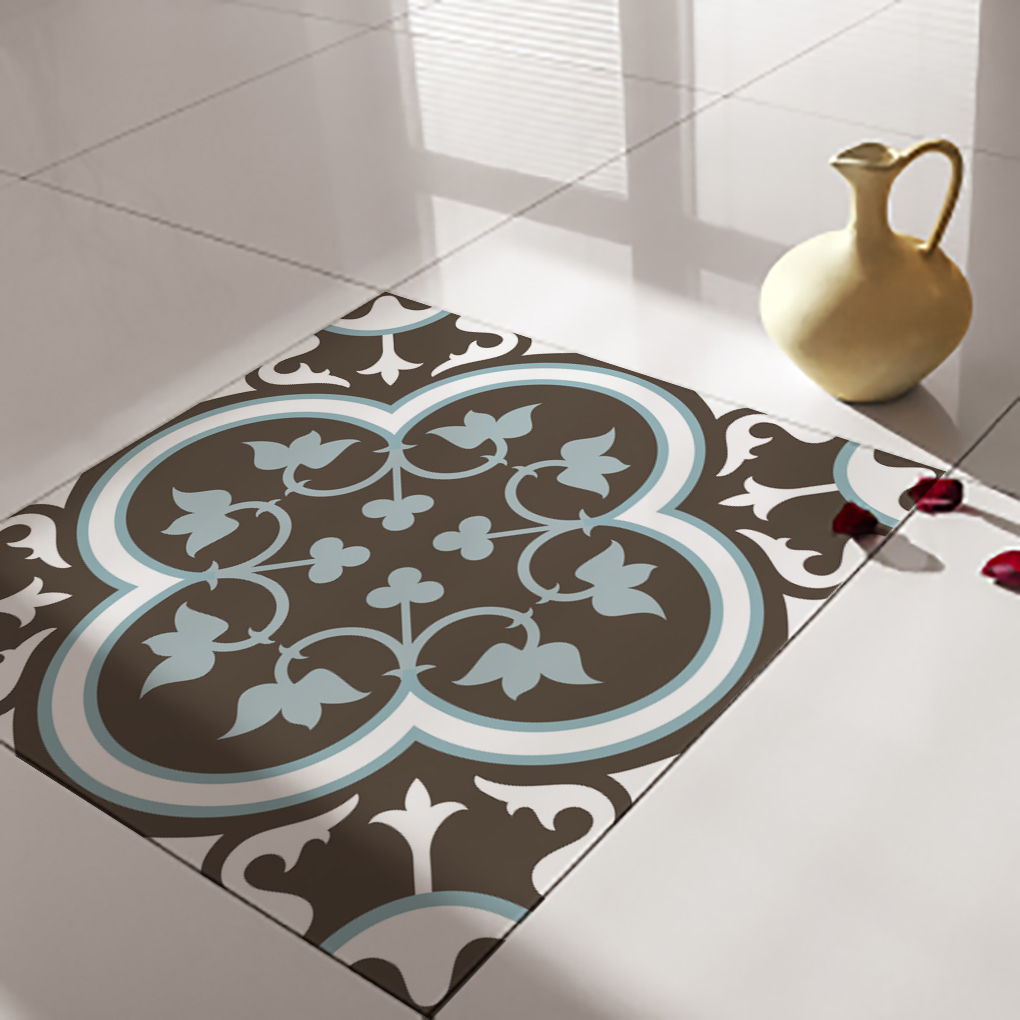 מדבקות אריחים לרצפה 171 חום כהה ותכלת בהיר